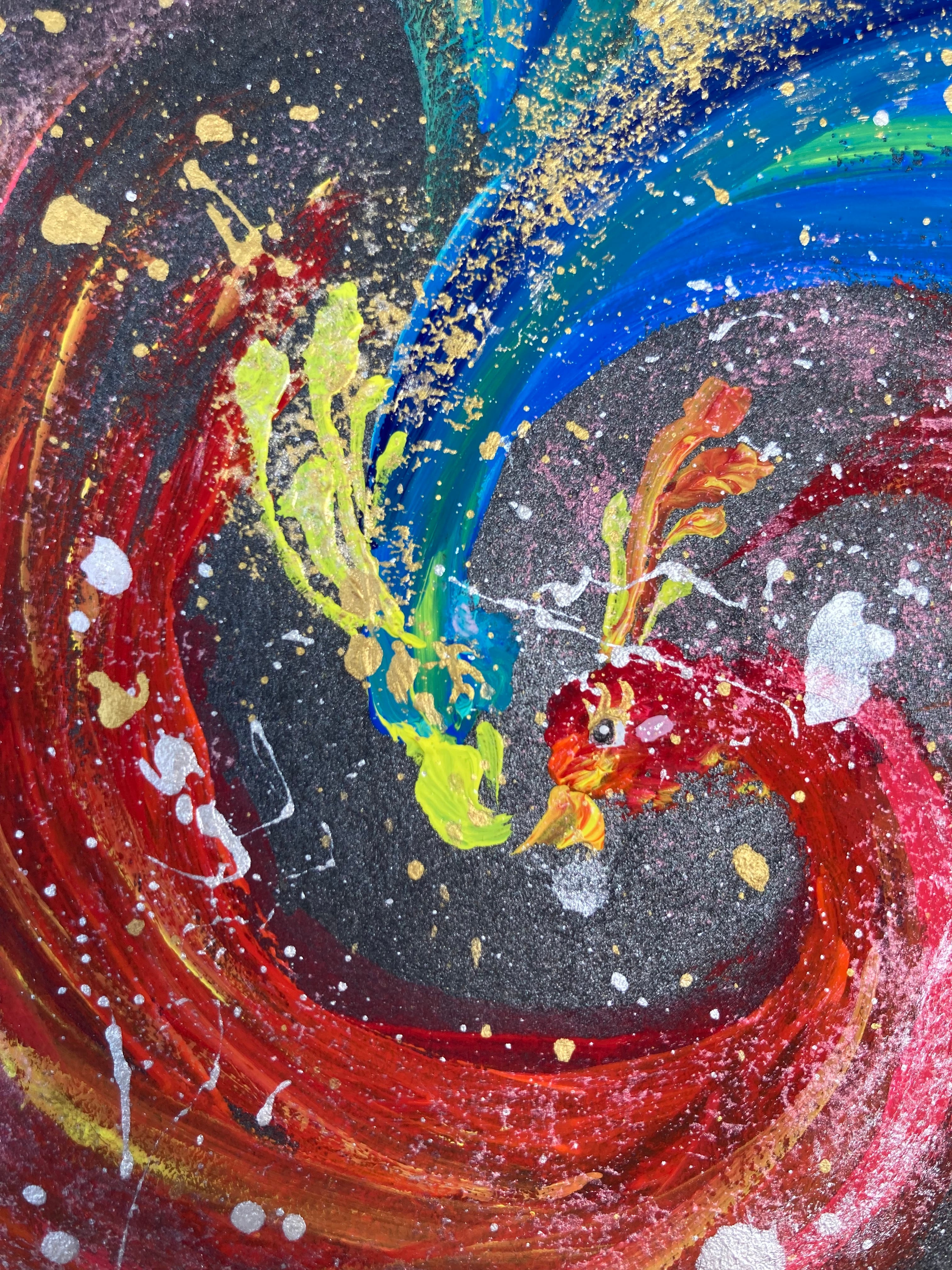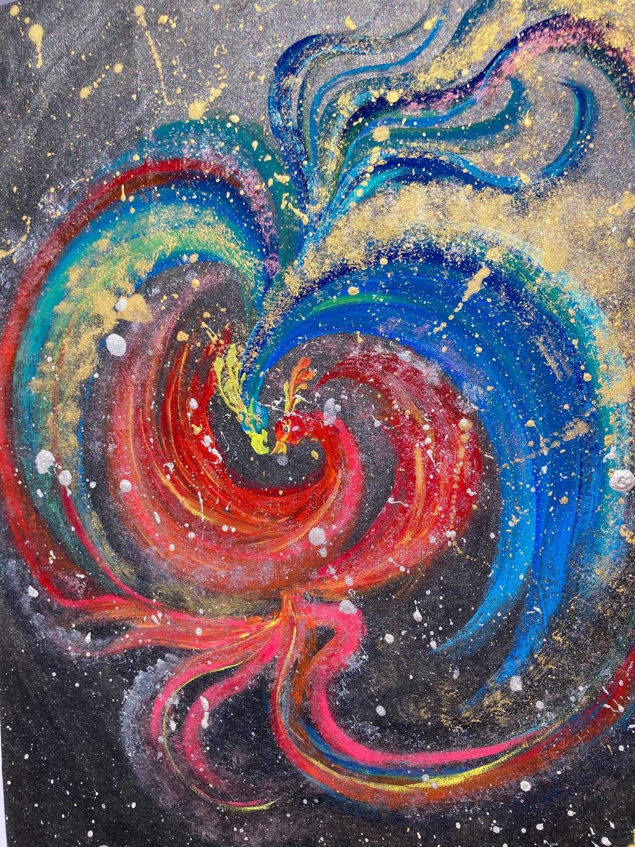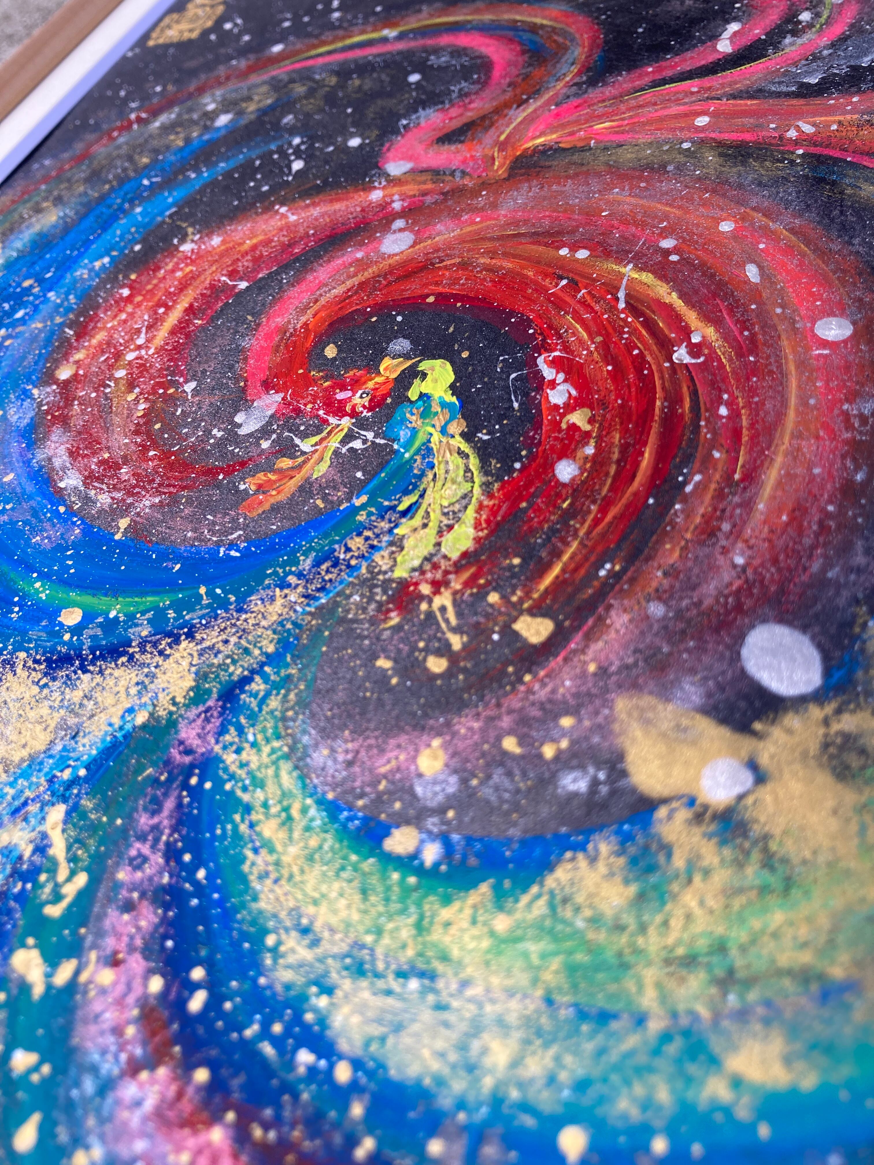 瑠璃色と紅色の鳳凰